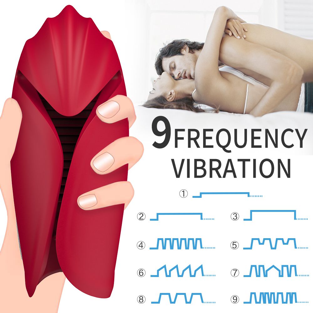 Simple vibrating masturbator cup, multiple stimulating glans, with mini tongue licking, provides squeezing sensation on both sides.