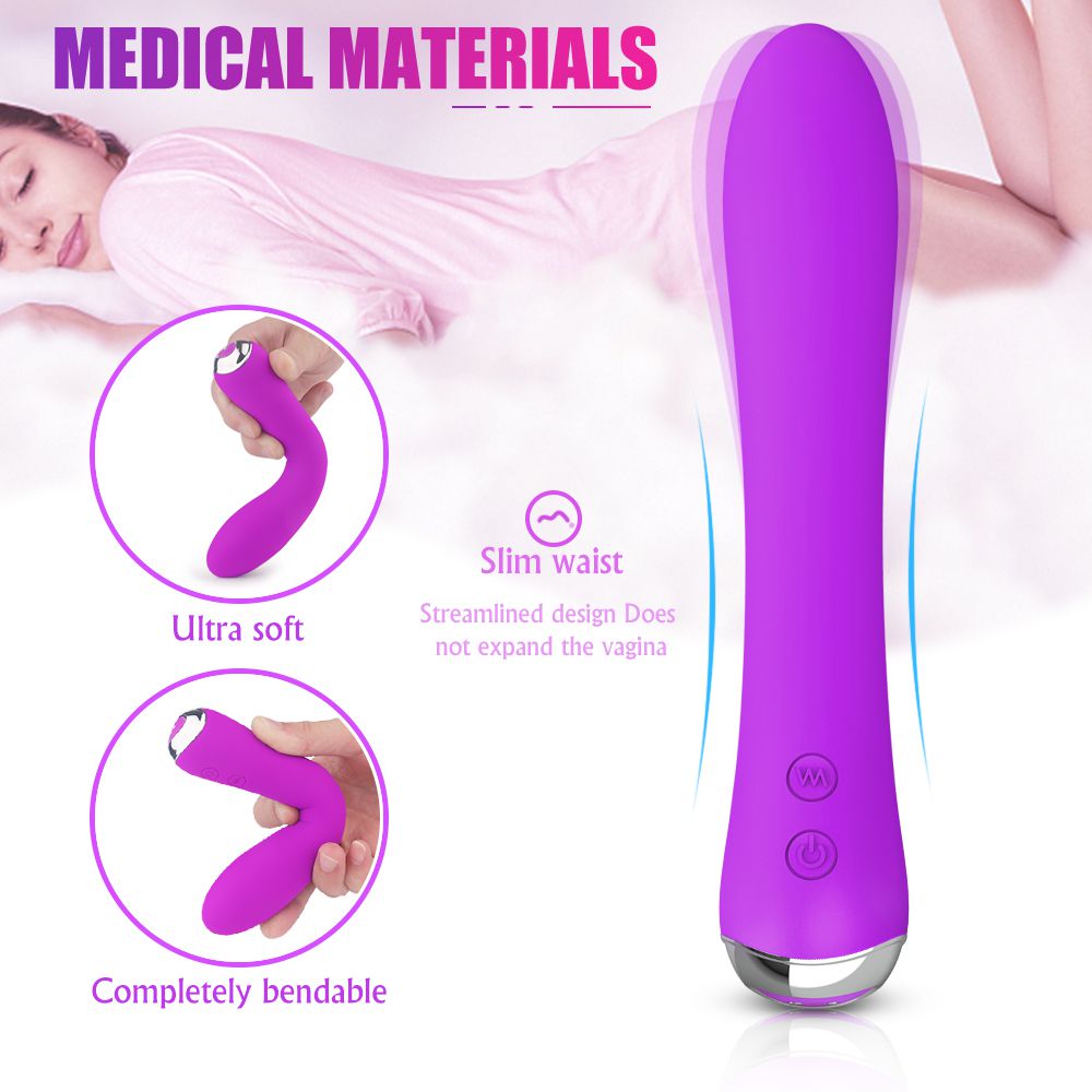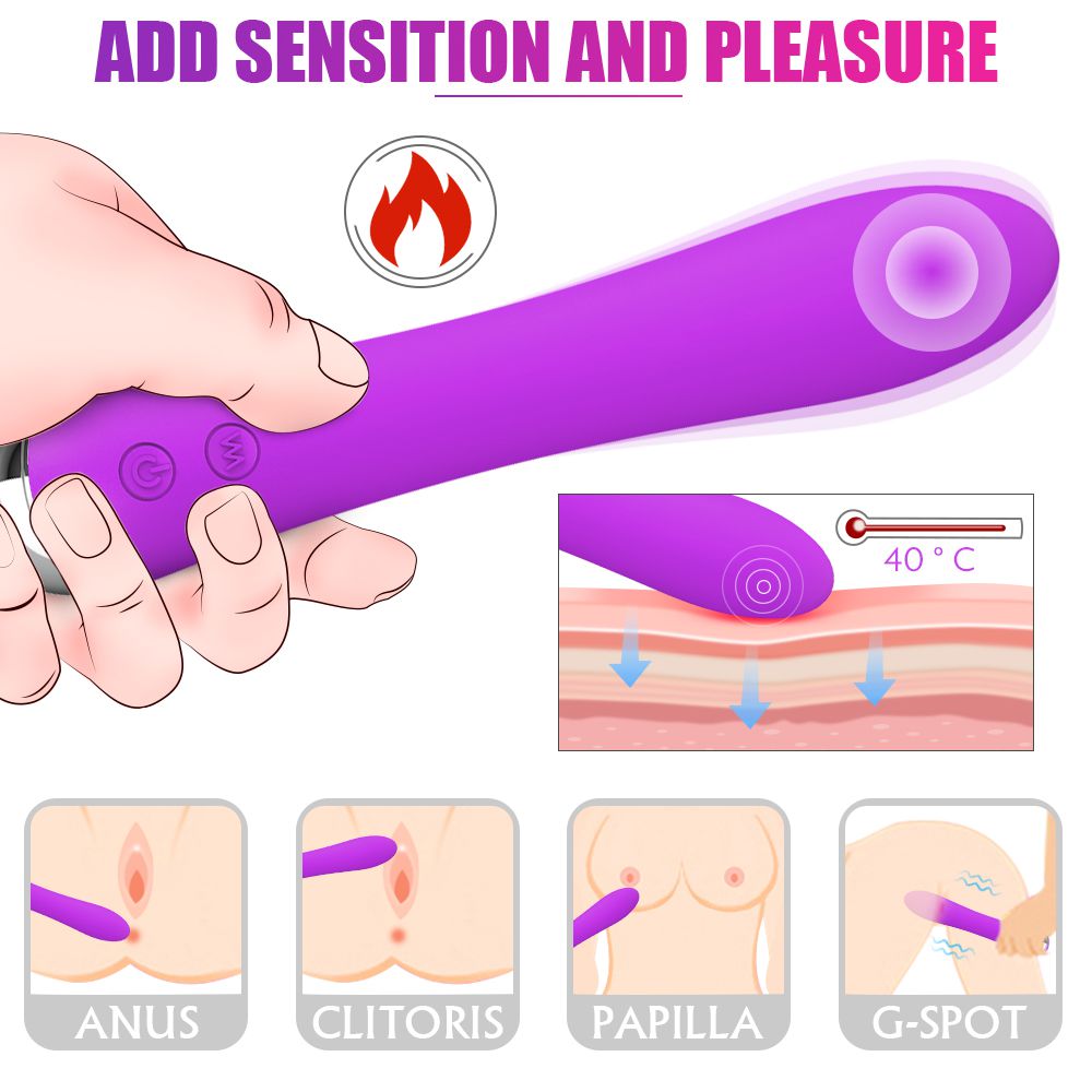Heatable vibrating wand, soft rod body, medical-grade silicone + ABS.